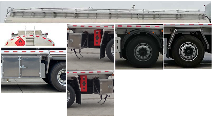 其它:1、該車適用于危險(xiǎn)品運(yùn)輸,運(yùn)送危險(xiǎn)貨物車輛類型為:FL型。準(zhǔn)運(yùn)介質(zhì)最大密度:850千克/立方米,罐體總?cè)萘?4.3立方米,罐體有效容積23.64立方米,罐體外形尺寸(長(zhǎng)×寬×高)(mm):8200×2300×1600。2、側(cè)防護(hù)材料為鋁合金,螺栓連接;后防護(hù)材料為Q235,螺栓連接,截面尺寸(mm)80×140,下邊緣離地高480mm。3、僅采用軸距(mm):1995+4500+1350。隨底盤選裝平頂駕駛室;選裝駕駛室前面罩;高頂駕駛室頂部氣喇叭為選裝件;駕駛室前角擾流板為選裝件,選裝駕駛室頂部"東風(fēng)商用車"企業(yè)標(biāo)識(shí),選裝AEBS攝像頭和雷達(dá)面罩。選裝后處理隔熱板。僅選用排氣管前置、限速裝置(限速80km/h)、前輪盤式制動(dòng)及子午線輪胎的底盤,轉(zhuǎn)向輪安裝爆胎應(yīng)急防護(hù)裝置,后軸采用空氣懸架。安裝帶衛(wèi)星定位功能的行駛記錄儀。EBS型號(hào)/生產(chǎn)廠家:EBS5/東科克諾爾商用車制動(dòng)系統(tǒng)(十堰)有限公司,VIE EBS/ESC-Ⅱ/浙江萬安科技股份有限公司。發(fā)動(dòng)機(jī)/油耗值(L/100km)對(duì)應(yīng)為DDi75E350-60/38.1,L9NS6B400/38.2。4、選裝ETC。罐體上部選裝上走道,左右側(cè)后部選裝工具箱,選裝左側(cè)工具箱樣式。第二軸選裝弧形膠制擋泥板或方形擋泥板。