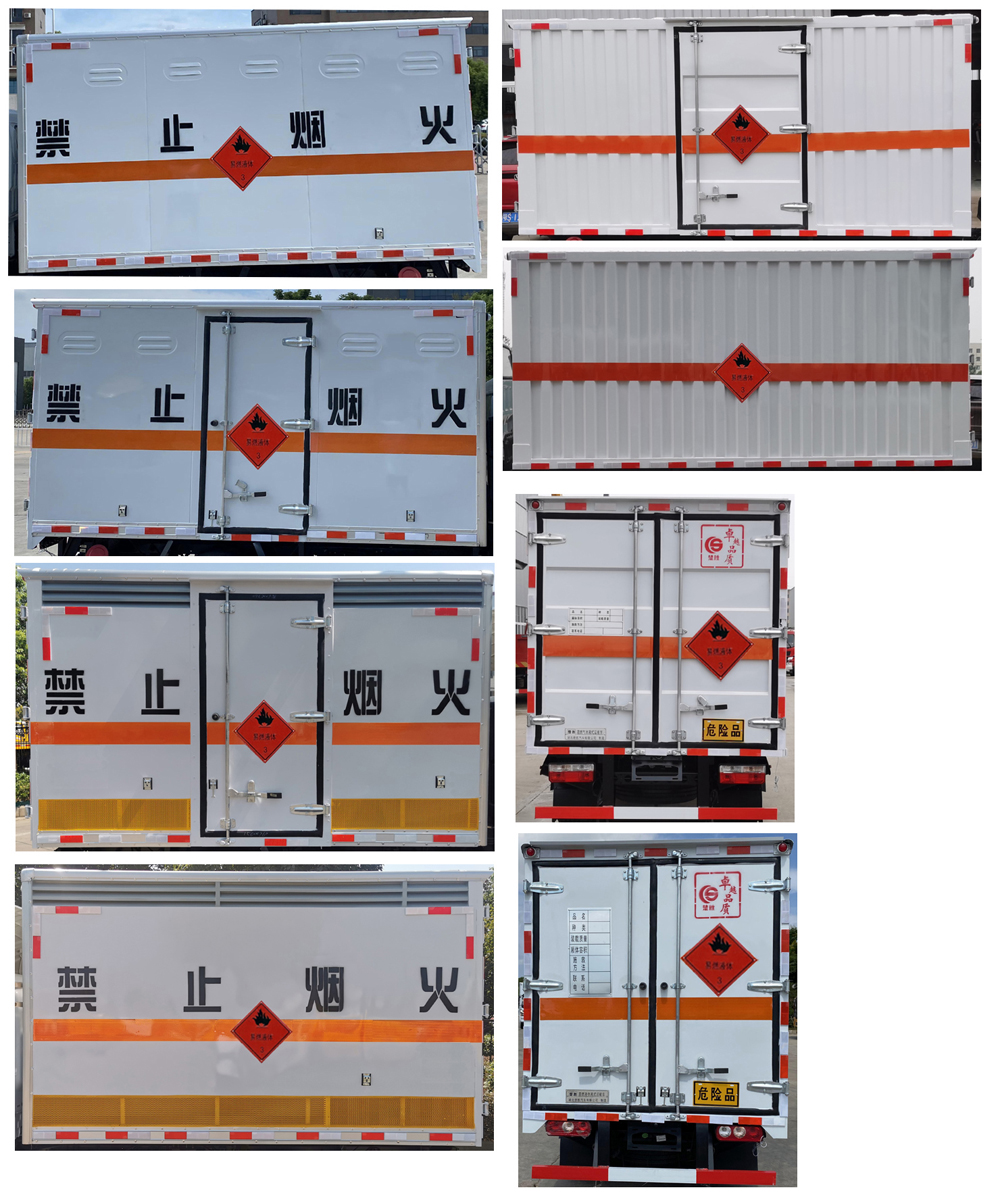 | 配置 | 1、該車適用于運(yùn)輸危險(xiǎn)品。運(yùn)送危險(xiǎn)品類項(xiàng)號(hào):3。廂體頂部封閉,不可開啟。2、側(cè),后防護(hù)材料均為Q235,側(cè)防護(hù)螺栓連接;后防護(hù)焊接,截面尺寸100×50mm,下邊緣離地高360mm。3、隨底盤選裝前部燈具和側(cè)轉(zhuǎn)向燈,選裝駕駛室圍面板和格柵,選裝前保險(xiǎn)杠外觀,選裝輪輞外觀,選裝輪眉.僅選用排氣管前置、限速裝置(限速80km/h)、前輪盤式制動(dòng)及子午線輪胎的底盤,安裝帶有衛(wèi)星定位功能的行駛記錄儀。ABS**器型號(hào)/生產(chǎn)廠家:YF8/武漢元豐汽車電控系統(tǒng)有限公司。發(fā)動(dòng)機(jī)/油耗值(L/100km)對(duì)應(yīng)關(guān)系為:Q23-95E60/11.4.轉(zhuǎn)向輪安裝輪胎爆胎應(yīng)急防護(hù)裝置,該車型可選裝ETC車載裝置.廂體側(cè)面選裝開門型式及位置,選裝不帶側(cè)開門,選裝瓦楞板結(jié)構(gòu);廂體側(cè)面板選裝開百葉窗。 | ||