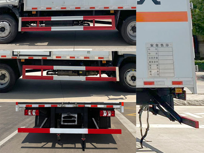 其它:1、該車適用于運輸危險品,運輸具有獨立容器(瓶)包裝的物品,運送危險物品類項號:9.廂體頂部封閉,不可開啟.2、側(cè)、后防護材料均采用Q235,側(cè)防護螺栓連接,后防護焊接,截面尺寸(mm)100×50,下邊緣離地高450mm.外形長/后懸/對應(yīng)關(guān)系為(mm):7200/2280,7050/2130.3、僅選用排氣管前置、限速裝置(限速80km/h)、前輪盤式制動及子午線輪胎的底盤,轉(zhuǎn)向輪安裝輪胎爆胎應(yīng)急防護裝置.安裝帶有衛(wèi)星定位功能的行駛記錄儀.ABS系統(tǒng)控制器型號/生產(chǎn)廠家:VIE ABS-Ⅱ/浙江萬安科技股份有限公司.發(fā)動機/油耗值(L/100km)對應(yīng)關(guān)系為:D30TCIF2/20.1,HFC4DE2-2E/20.60.該車可選裝ETC車載裝置.4、隨底盤選裝駕駛室.廂體側(cè)面選裝不同型式側(cè)開門及開門位置或不帶側(cè)門,選裝開百葉窗,選裝瓦楞板結(jié)構(gòu),選裝后門結(jié)構(gòu).