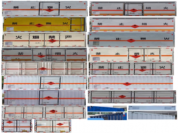 1、復(fù)合板工藝:嚴格按照公告尺寸制作。外板采用優(yōu)質(zhì)烤漆板(顏色可選:白,灰,檸檬黃)帶百葉窗,內(nèi)飾為導(dǎo)電性能良好的鋁平板有透氣孔,矩形骨架結(jié)構(gòu)內(nèi)部填充防火阻燃材料,復(fù)合加鉚合工藝。廂體四周鋁合金包邊及包角,車廂底板鋪設(shè)防靜電膠皮,廂體前臉50公分高鋪設(shè)防靜電膠皮。后部設(shè)置對開門,右側(cè)單開門,廂體內(nèi)部兩側(cè)安裝捆綁貨物的臥環(huán)。廂體內(nèi)部安裝煙霧報警器,門上安裝防盜報警器。車廂一周粘貼橙色反光帶,箱體粘貼菱形標志牌,安全告示牌,危險品牌,箱體安裝示廓燈(前白后紅),拖地靜電帶。