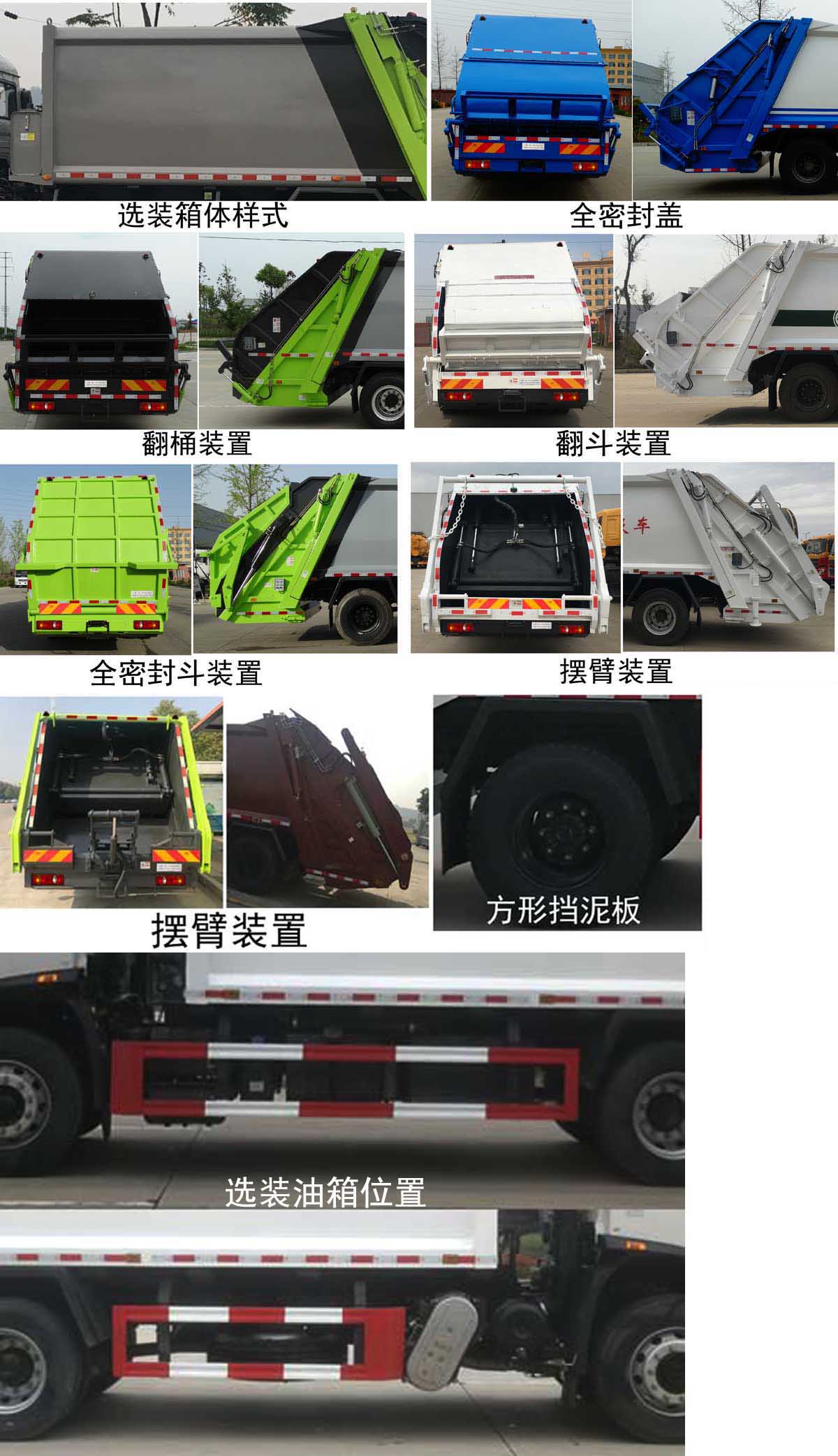 | 配置 | 1、該車主要專用裝置由箱體、壓縮系統(tǒng)組成,用于垃圾的收集與清運。該車可選裝方形或弧形箱體,選裝全密封蓋裝置,選裝方形擋泥板,選裝后部工作裝置,選裝側(cè)防護(hù)樣式。選裝工作裝置時外形長/前懸/軸距/后伸對應(yīng)關(guān)系為(mm):①無上料裝置:8670/1400/4500/-;8700/1430/4500/-;8870/1400/4700/-;8900/1430/4700/-;②全密封斗裝置和擺臂裝置:8870/1400/4500/200;8900/1430/4500/200;9070/1400/4700/200;9100/1430/4700/200;③翻桶裝置和翻斗裝置:9070/1400/4500/400;9100/1430/4500/400;9270/1400/4700/400;9300/1430/4700/400。僅采用4500mm,4700mm軸距。2、側(cè)防護(hù)采用冷彎型鋼/Q235,螺栓連接;后防護(hù)由專用裝置替代,下邊緣離地高:500mm。3、隨底盤選裝高度不同的駕駛室;選裝前霧燈;選裝駕駛室頂部裝飾燈;選裝駕駛室前面罩;選裝前保險杠及前部燈具,駕駛室前臉擾流罩為選裝件;駕駛室臥鋪側(cè)窗選裝裝飾板;選裝油箱安裝位置,選裝踏步結(jié)構(gòu)。安裝帶有衛(wèi)星定位功能的行駛記錄儀。ABS型號/生產(chǎn)廠家:3631010-C2000/東科克諾爾商用車制動系統(tǒng)(十堰)有限公司,ABS 8/東科克諾爾商用車制動系統(tǒng)(十堰)有限公司, 4460046450/威伯科汽車**系統(tǒng)(**)有限公司。采用的發(fā)動機(jī)與油耗值對應(yīng)關(guān)系為(L/100Km):DDi50E190-60/23.9,D4.5NS6B190/24.4,D6.7NS6B230/23.7,B6.2NS6B210/23.8,B6.2NS6B230/23.8。 | ||