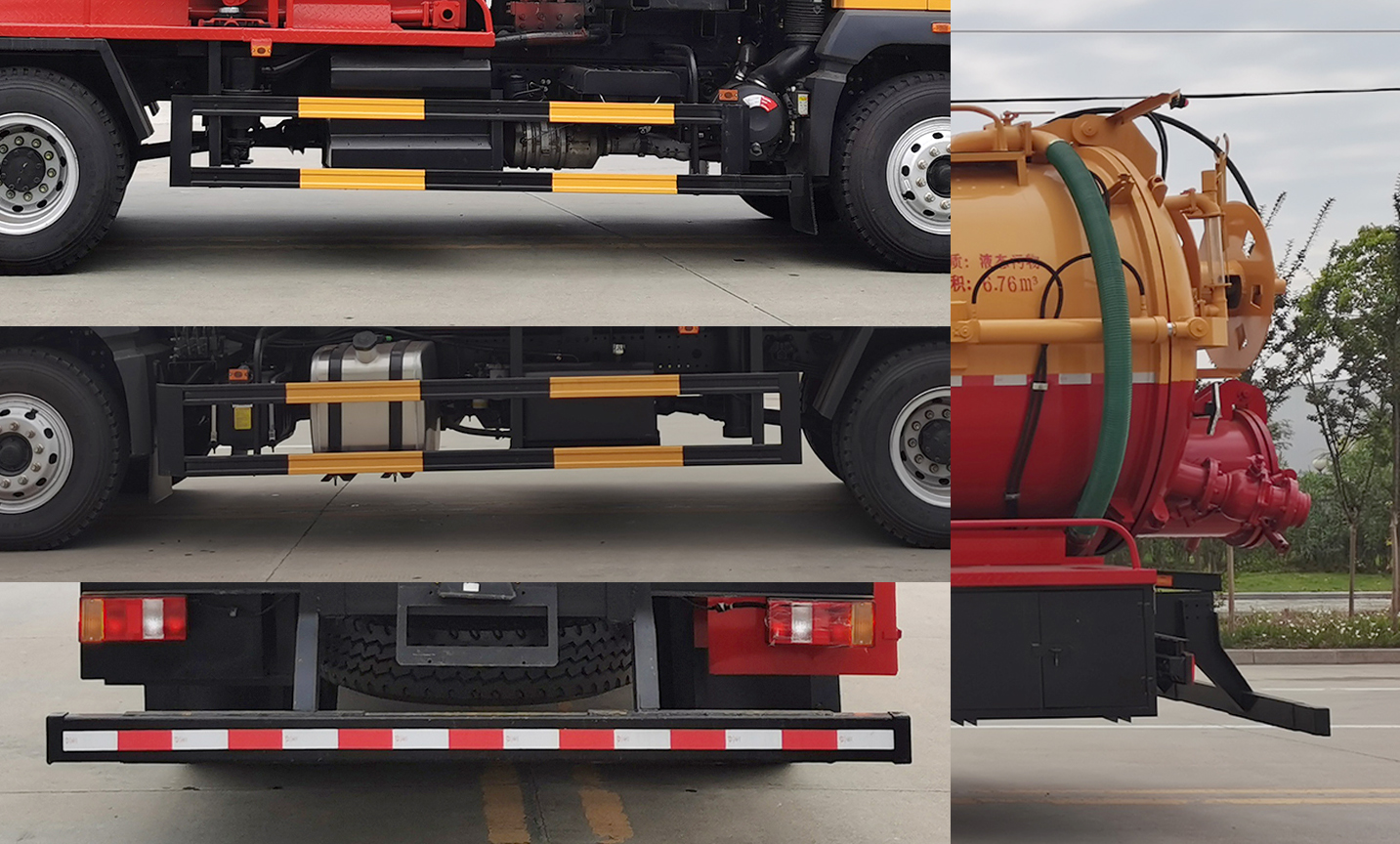 配置  ABS型號:XH-KQ4S4M-E01,CM4XL-4S/4M;ABS生產(chǎn)企業(yè):廣州市西合汽車電子裝備有限公司,廣州瑞立科密汽車電子股份有限公司;選裝描述:隨底盤選裝駕駛室;側(cè)后防護(hù)情況:側(cè)/后防護(hù)材料為冷彎型鋼/Q235,焊接;后防護(hù)截面尺寸120×50mm,下邊緣離地高500mm;罐體有效容積(立方米)、罐體外形尺寸(mm):罐體尺寸為(直段長×直徑)(mm):4700×1950,其中罐體前段為清水罐(直段長2040mm);后段為污水罐(直段長2660mm)。污水罐有效容積6.76立方米;清水罐有效容積5.41立方米;專用功能及裝置:該車用于下水道清洗或吸污,主要專用裝置為吸污裝置總成、清洗裝置總成;其他說明:僅采用軸距(mm):4700。兩罐不能同時滿載;選裝前面罩。卸料方式為舉升后卸式。
