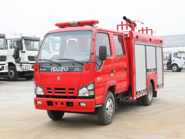 2噸消防車采用慶鈴汽車股份有限公司QL1070BUHWY 型二類汽車底盤,原裝雙排駕駛室,乘員2+3人,該車駕乘舒適輕便。上裝采用內(nèi)藏式水罐,整車載液量為1880kg。器材箱采用高質(zhì)量鋁合金卷簾門。底盤取力,發(fā)動(dòng)機(jī)型號(hào)為4KH1CN6LB,最大功率88kW,通過(guò)萬(wàn)向聯(lián)軸器驅(qū)動(dòng)安裝在汽車尾部泵房里的上海雄真CB10/30型常壓消防泵,可在1.0MPa下穩(wěn)定輸出30L/s的流量;車頂安裝威斯特PL8/24型消防炮,流量30L/s,對(duì)應(yīng)壓力0.8MPa,最大承壓1.3MPa,射程 水:≥60m   泡沫≥45m,可360°旋轉(zhuǎn)。該車具有軸距短、通過(guò)性強(qiáng)、綜合性能強(qiáng)、操控集中簡(jiǎn)便等特點(diǎn)。
